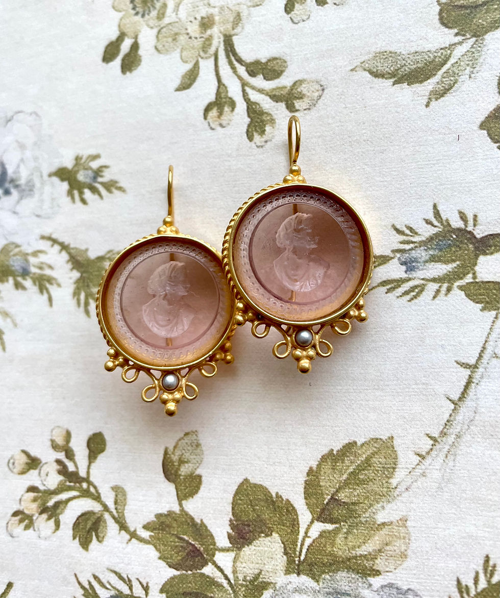 Victoriana Peach Intaglio Earrings in Gold