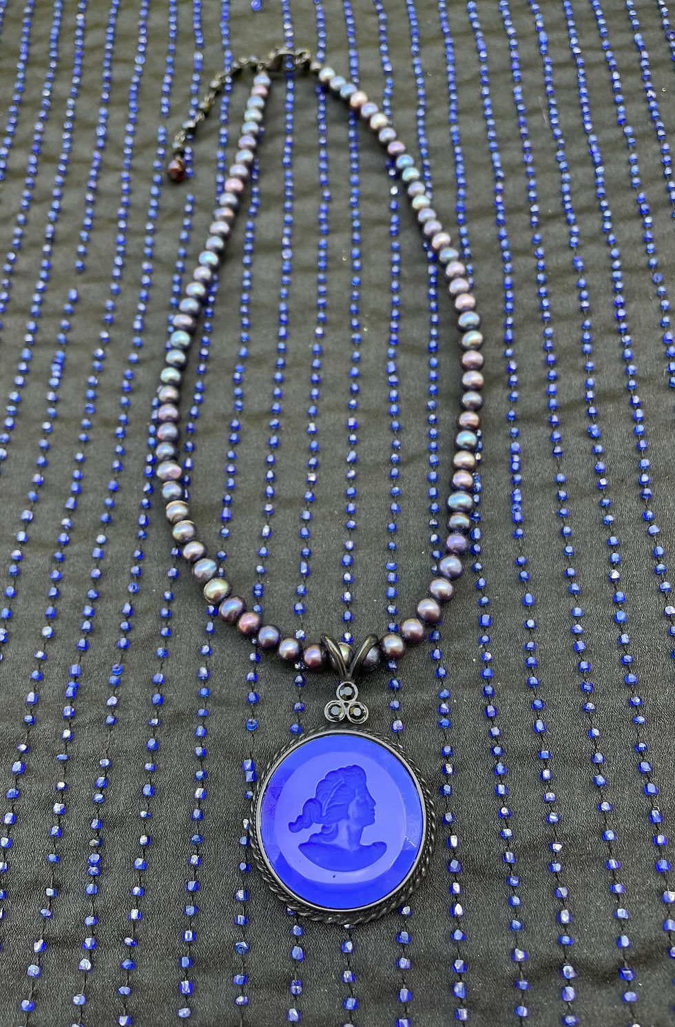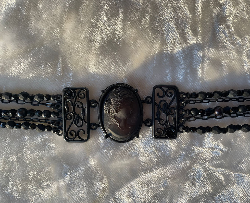 Noir~ Creme Intaglio and Jet Chain Necklace