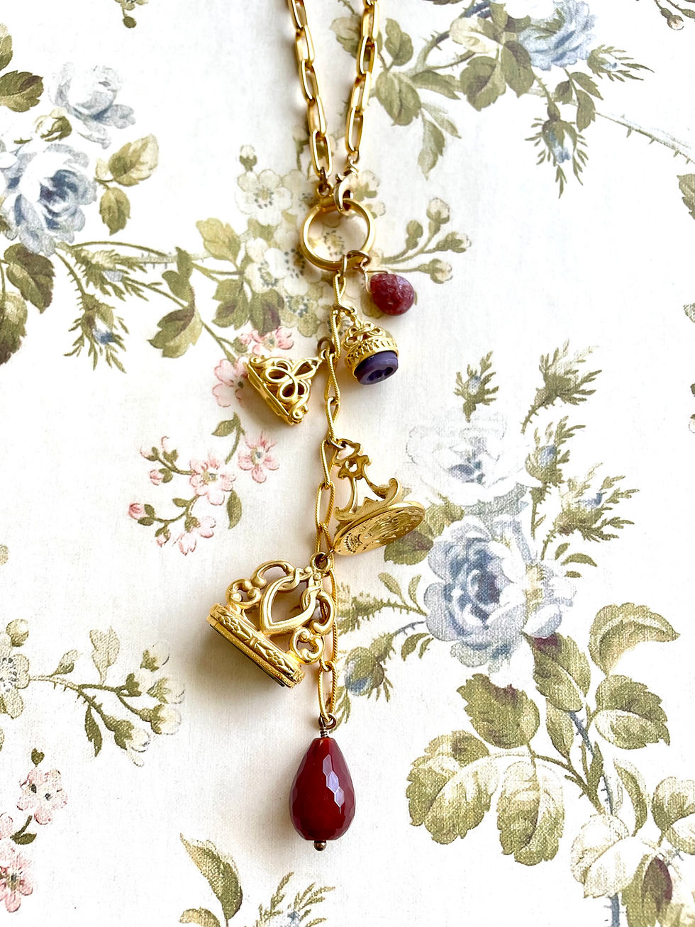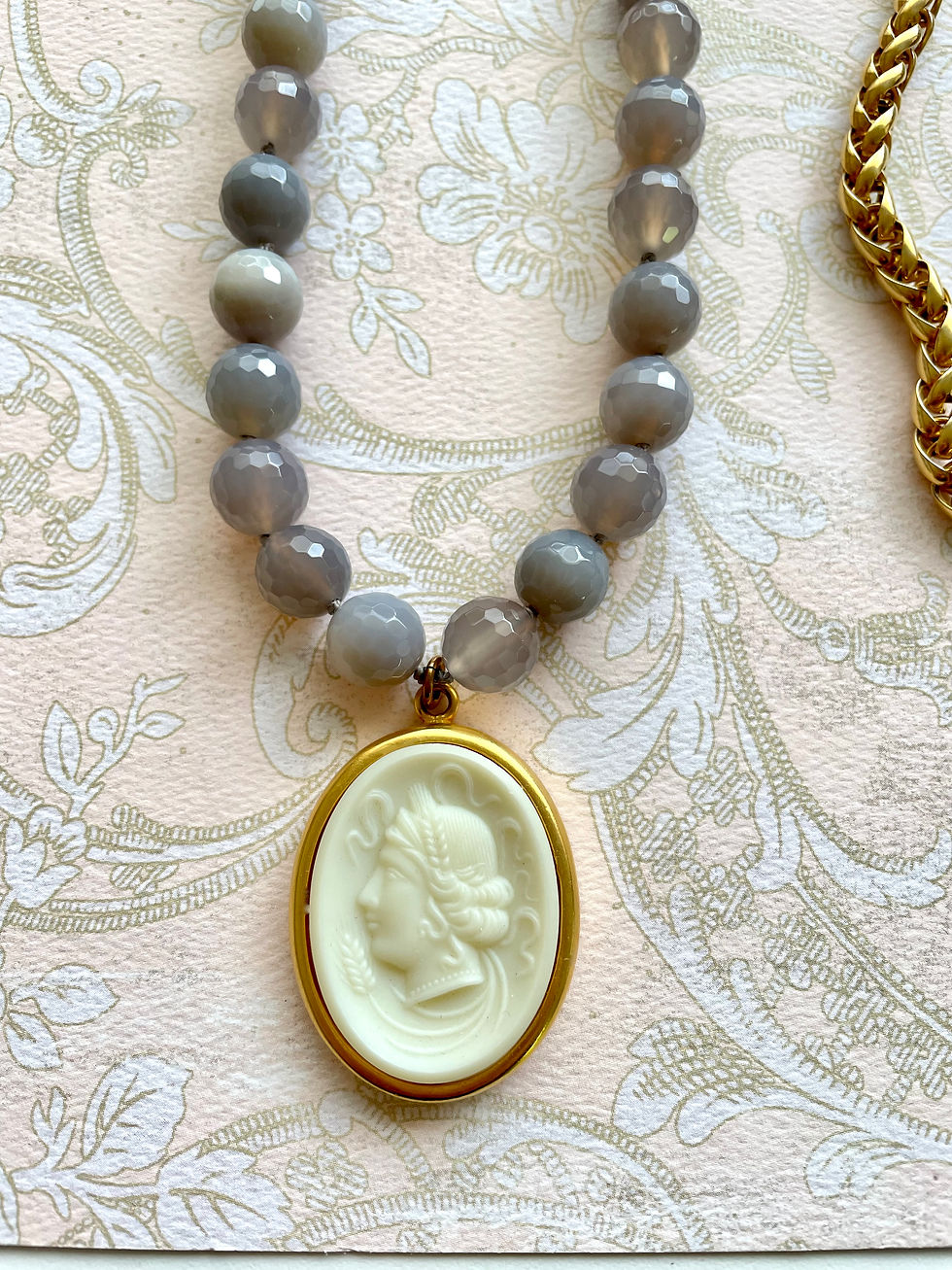 French Blue Bobbi Cameo Pearl Chain Necklace